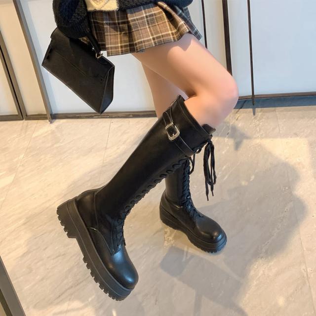 厚底 ロングブーツ レースアップ 韓国風