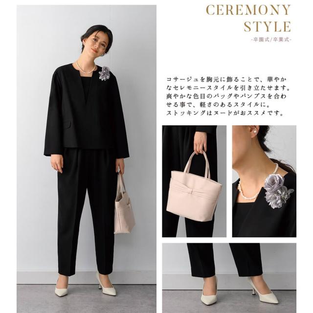 ※ネックレスやコサージュ等セレモニー用のアクセサリーをコーディネート頂き、卒園・卒業式のママスーツとしても着用可能