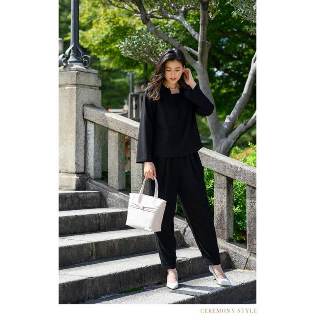 ブラックフォーマル レディース パンツスーツ 家族葬 お通夜 お盆 法事 フォーマレスブラック