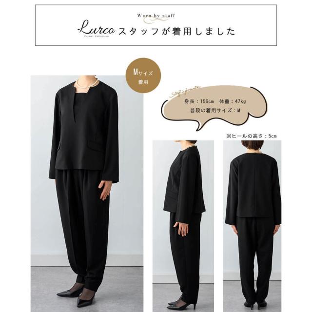 ルルコ(Lurco)/ブラックフォーマル レディース パンツスーツ 家族葬 お通夜 お盆 法事 フォーマレスブラック