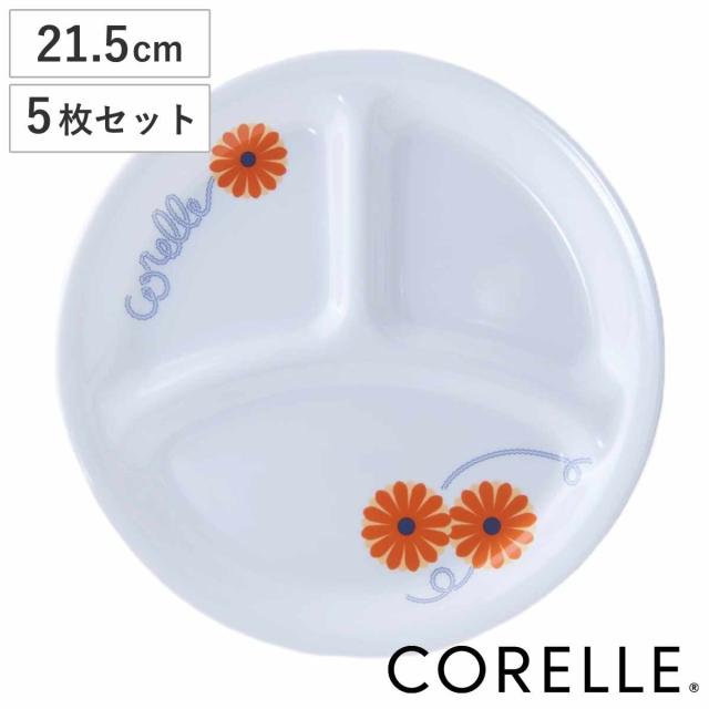 ランチプレート 21.5cm CORELLE コレール オレンジマーガレット 強化ガラス ( 食洗機対応 電子レンジ対応 オーブン対応 耐熱 皿 お皿 仕切り皿 軽い 割れにくい 白い食器 丸 ワンプレート ランチ 3つ仕切り 洋食器 白 おしゃれ )