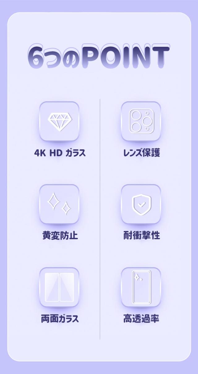 - フィルムいらずの4K HD ガラスは、iPhoneの美しさはそのままに、ずっと変わらない透明感を長期間維持可能。
