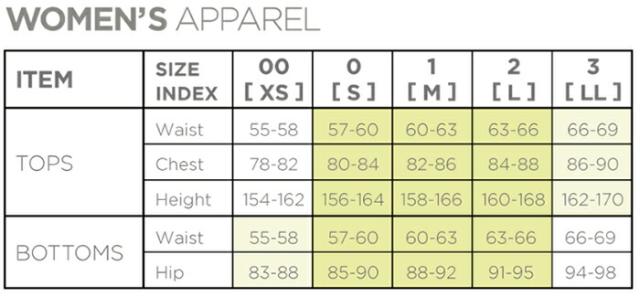 00(XS)サイズ:ウエスト55-58/チェスト78-82/身長154-162/ヒップ83-88