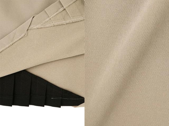 裾サイドから覗くアシンメトリーなプリーツが大人可愛いスカートです。前のプリーツはボディと同色で、後ろはカラーを変えて表情の違いを出しました。ラメ入りロゴが品のある華やかなアクセントに。生地は適度な厚みがありつつ、サラッとした着心地の良い素材で、4方向に伸びる抜群のストレッチ性がどんな動きも窮屈さを感じさせない快適な穿き心地を提供します。スッキリ台形シルエットに総丈40cmのミニ丈が脚長効果を発揮。着回し力の高いカラーリングであらゆるトップスとも相性良く合わせることが出来ます。