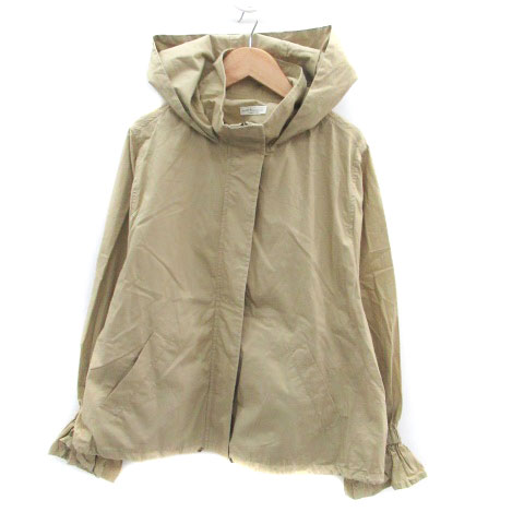 【中古】アースミュージック&エコロジー ブルゾンジャケット ミドル フード付 フレアスリーブ F ベージュ レディース