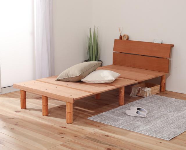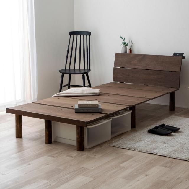 立ち座りのしやすさやライフスタイルに合わせて高さを3段階で調節することができます。脚を全て外せば、解放感ある和モダンなローベッドにも。