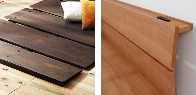 | 材質 | 本体、床板:突板(ナチュラル:タモ、ダークブラウン:ウォールナット)、桐材 木脚:パイン材 塗装:オイル仕上げ |