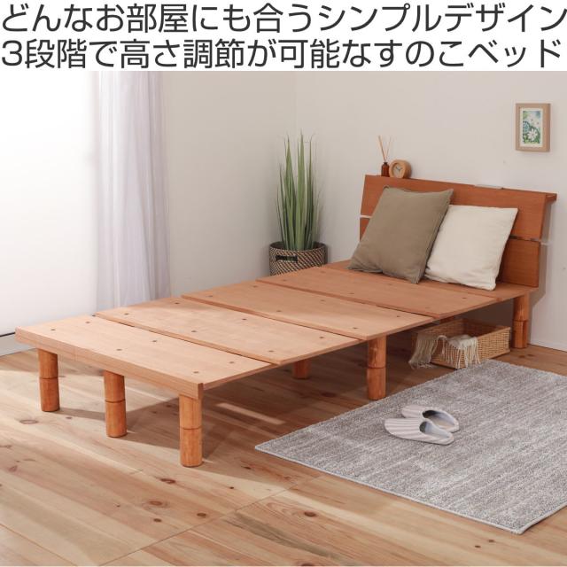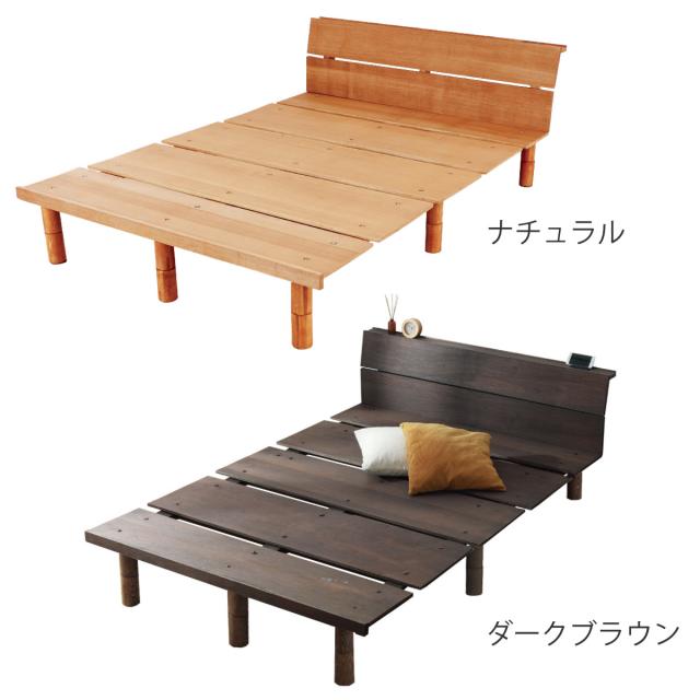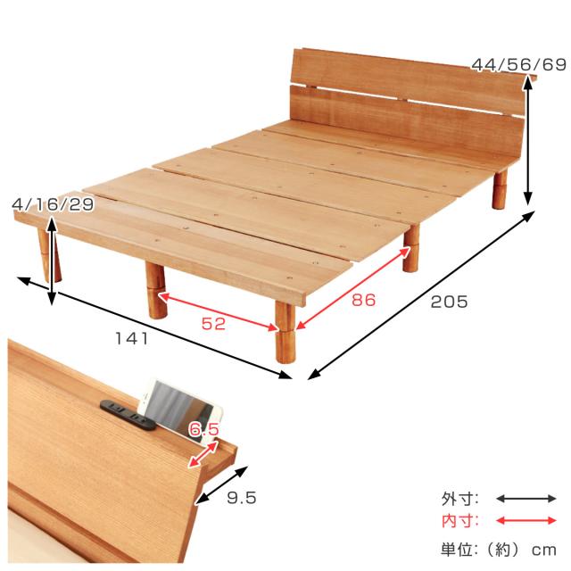 幅広すのこベッド ダブル 宮棚 2口コンセント付 高さ調整可 ( 頑丈 ベッド ベット フレーム すのこ ローベッド フロアベッド 脚付き ハイ ミドル ロー 通気性 耐久性 北欧 ナチュラル 天然木 木製 )