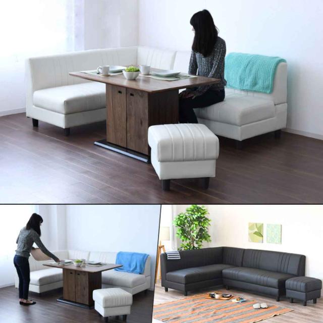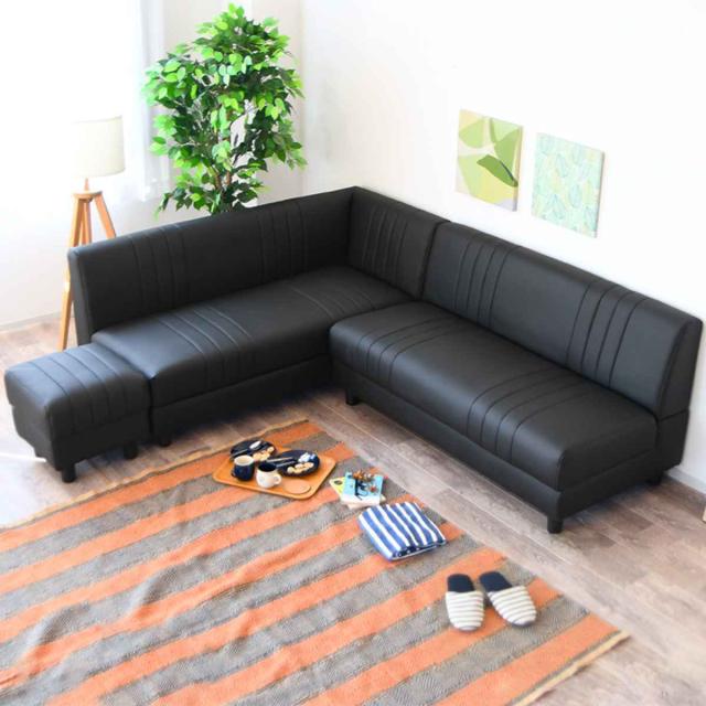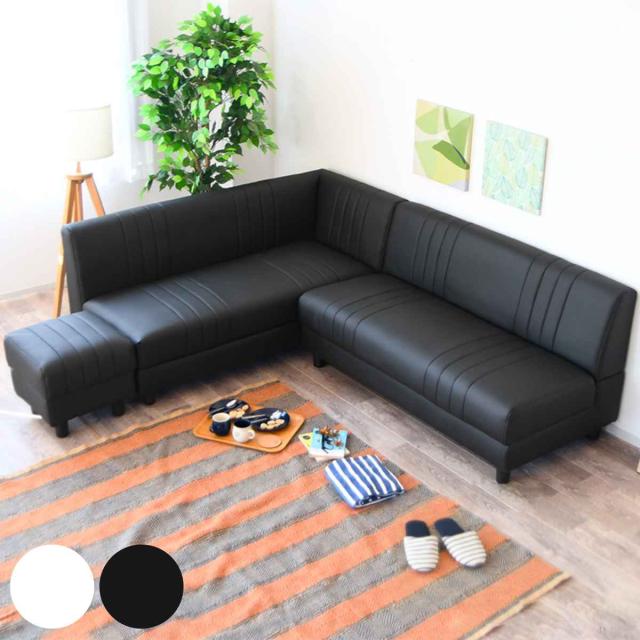 ソファ L字 3点セット 隠し収納 脚取り外し可能 レイアウト自由 ソフトレザー ( 開梱設置 ソファー コーナーソファ ダイニングソファ ローソファ レザー調 収納 ホワイト ブラック 白 黒 高級感 完成品 )