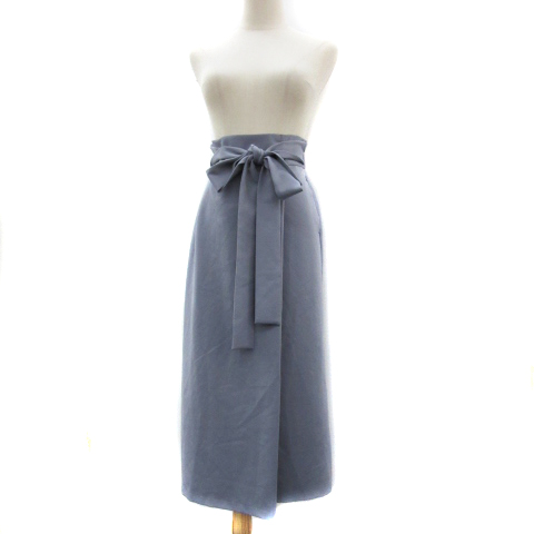 【中古】ナノユニバース ナノベース フレアスカート ロング丈 無地 リボンベルト付き 36 くすみブルー レディース