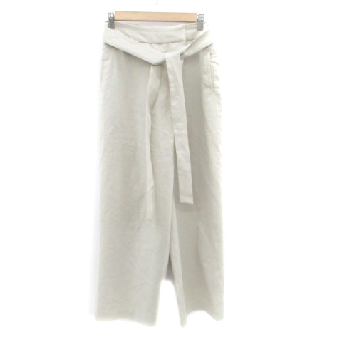 【中古】ブリスポイント BLISSPOINT ワイドパンツ アンクル丈 リボンベルト付き L グレー /HO52 レディース