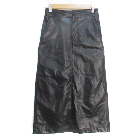 【中古】ニコアンド フェイクレザースカート フレアスカート ロング丈 マキシ丈 無地 M 黒 ブラック /FF40 レディース