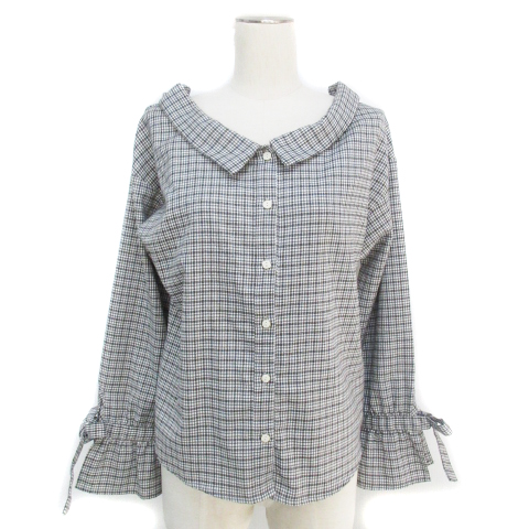 【中古】マジェスティックレゴン シャツ ブラウス 長袖 オフショルダー 千鳥格子柄 チェック柄 M 白 黒 レディース