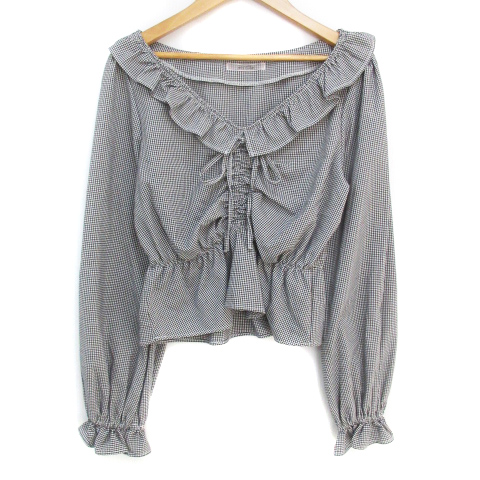 【中古】ワンアフター アナザー ナイスクラップ シャツ ブラウス 長袖 リボン ギンガムチェック柄 F 白 黒 レディース
