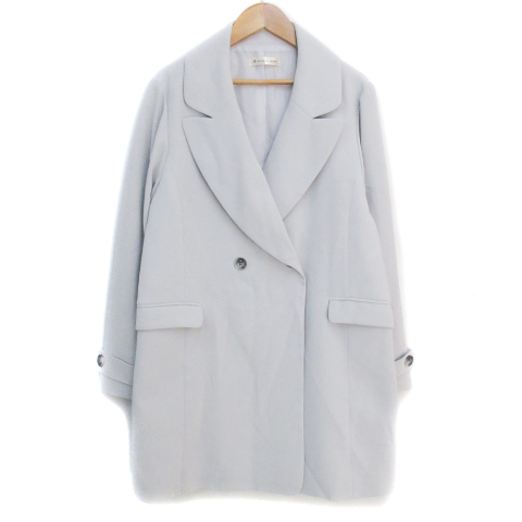 【中古】マジェスティックレゴン テーラードジャケット ロング丈 ダブルボタン M 水色 ライトブルー レディース