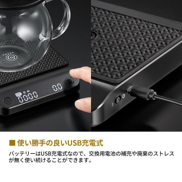 Cores/コレス/COFFEE SCALE C100/コーヒースケール/シンプル/黒/キッチンスケール/はかり/計り/時間/重量/0.1g単位/タイマー/防水/防水仕様/デジタル表示/コンパクト/ドリップスケール/USB充電式/充電式/プレゼント/ギフト/LEDパネル/デジタル/小さい/家庭用/おしゃれ/はかり/ハンドドリップ/1年保証/1年/保証/製品保証