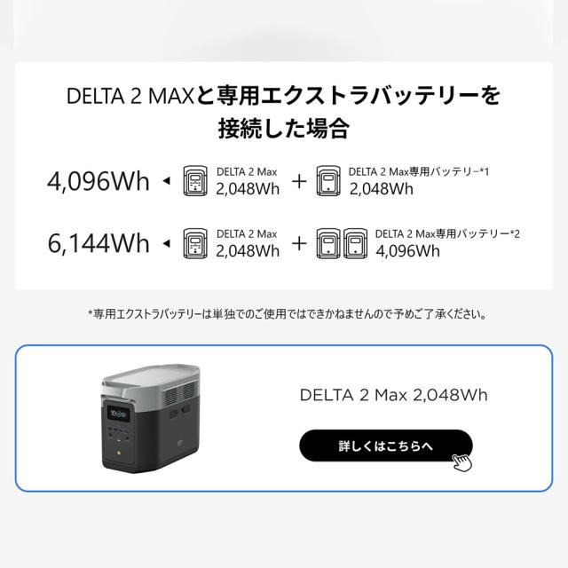専用エクストラバッテリー EcoFlow DELTA 2 Max 2048Wh 専用バッテリー ポータブル電源 アプリ対応 急速充電 非常用電源 車中泊 防災グッズ 発電機 家庭用蓄電池 リチウムイオン 二次電池パック エコフロー EFDELTA2MAXEB