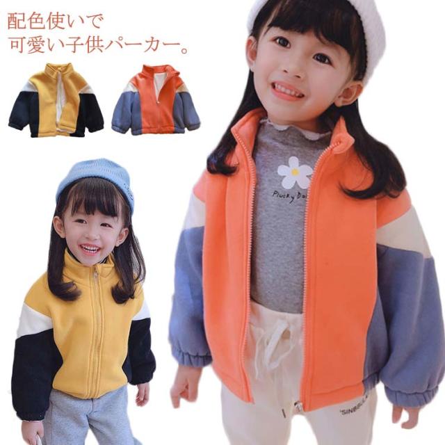 パーカー オシャレ 色切替 女の子 男の子 子供服 キッズ ベビー ジップアップパーカー 裏起毛 厚手 ジャケット ブルゾン ジャンパー スウェット ジャージ 子ども 上着 アウター 秋冬 秋服 通学 通園 85cm 90cm 100cm 110cm 120cm
