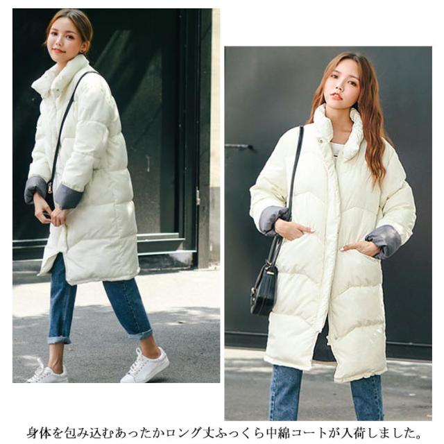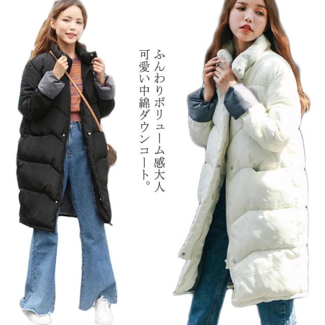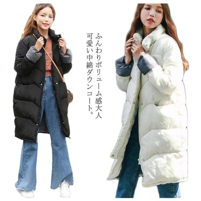 ふんわり中綿コート ダウンコート スタンドカラー 無地 ロングコート レディース 大きいサイズ ゆったり キルティングコート 体型カバー 厚手 防寒 ふっくら 中綿入り コート ボリューム プチプラ 無地 着痩せ おしゃれ アウター 冬服