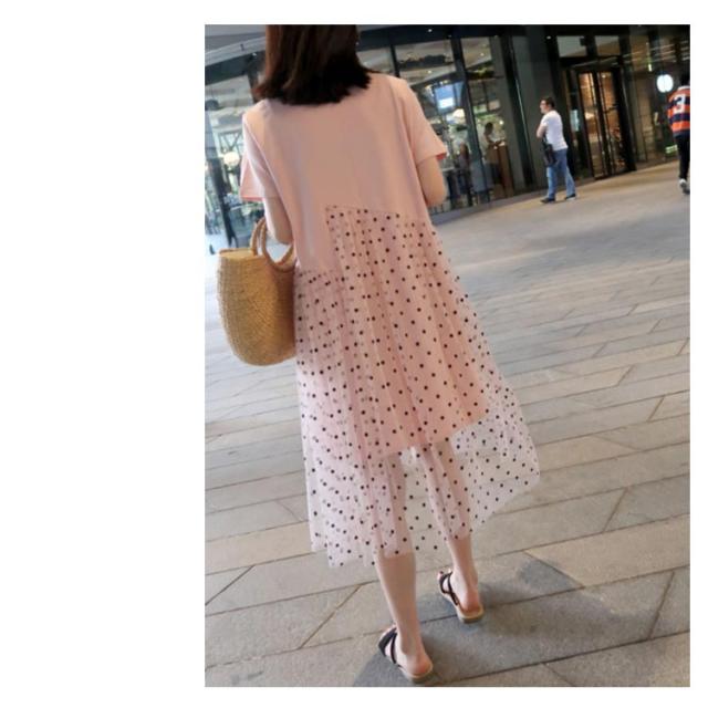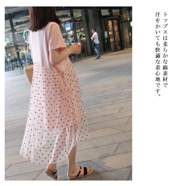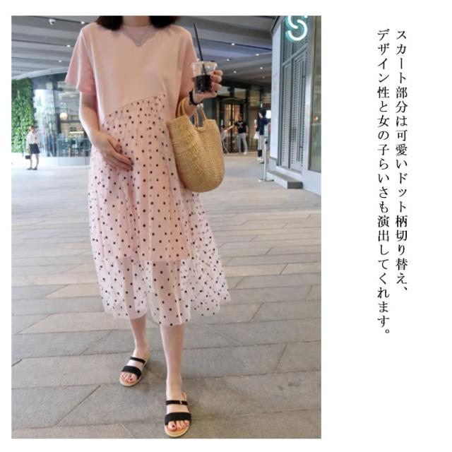 マタニティワンピース ワンピース マタニティ Tシャツワンピース 半袖 夏ワンピース 妊娠用 マタニティ服 切り替え ドット ミディ丈 おしゃれ 可愛い