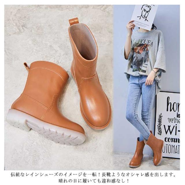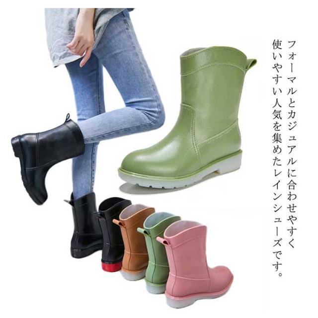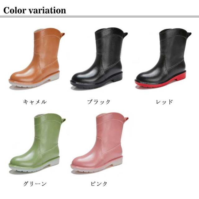 レインブーツ レディース レインシューズ おしゃれ ブーツ ショート 丈 防水 長靴 雨 雨靴 農作業 園芸 ガーデニング 22.5cm〜25cm オシャレ オリジナル ブラック キャメル ピンク グリーン