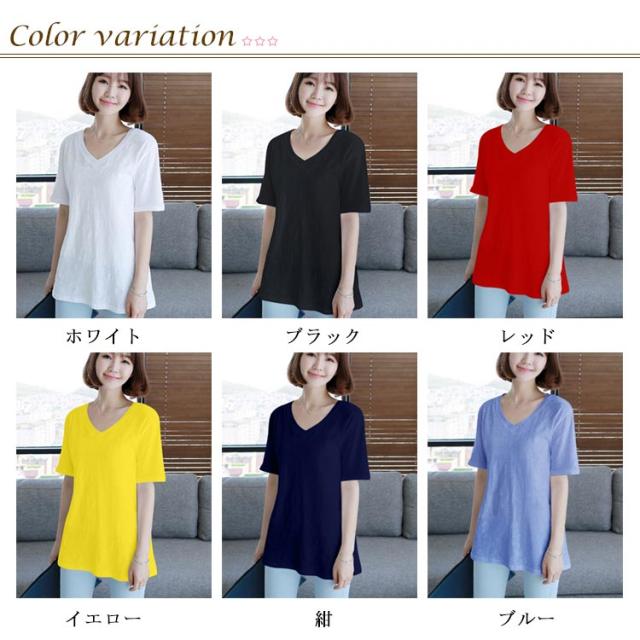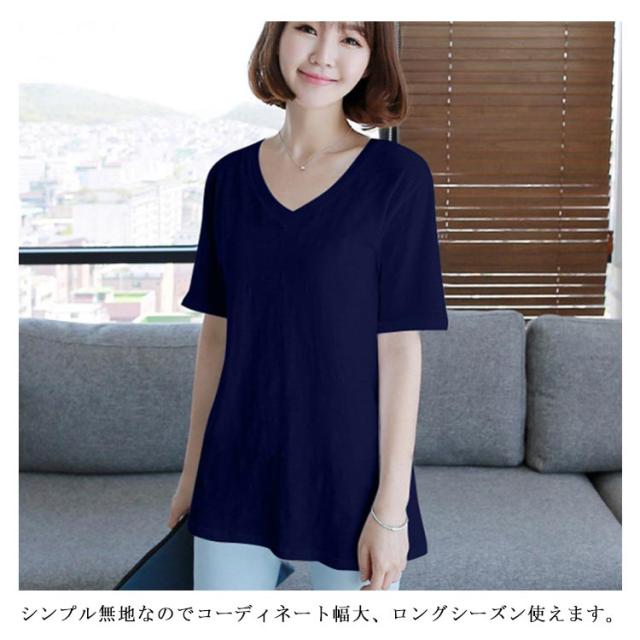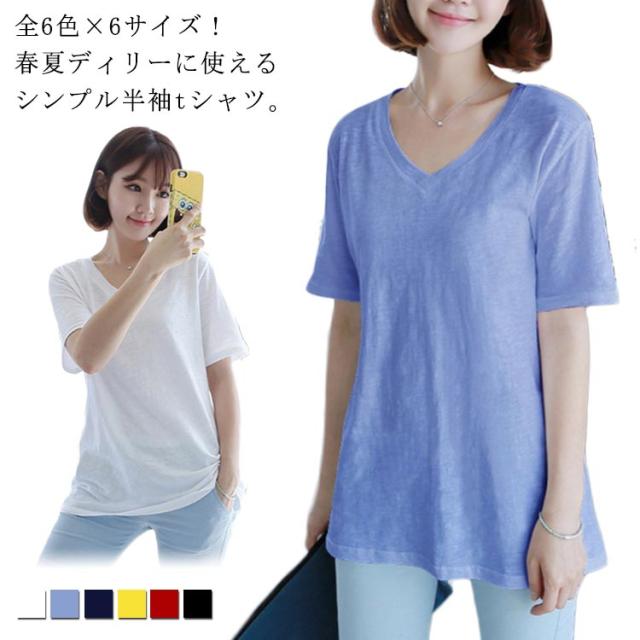 全6色×6サイズ!tシャツ レディース ロングtシャツ 半袖 無地tシャツ Vネック カットソー トップス 大きサイズ シンプル 春服 秋服 おしゃれ