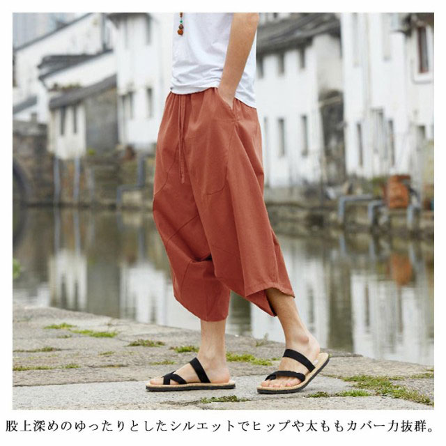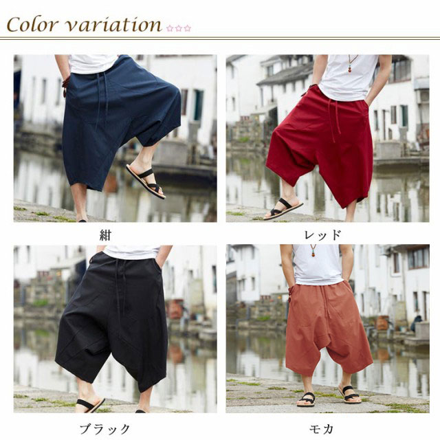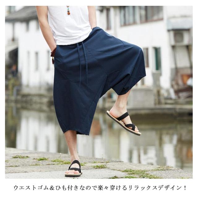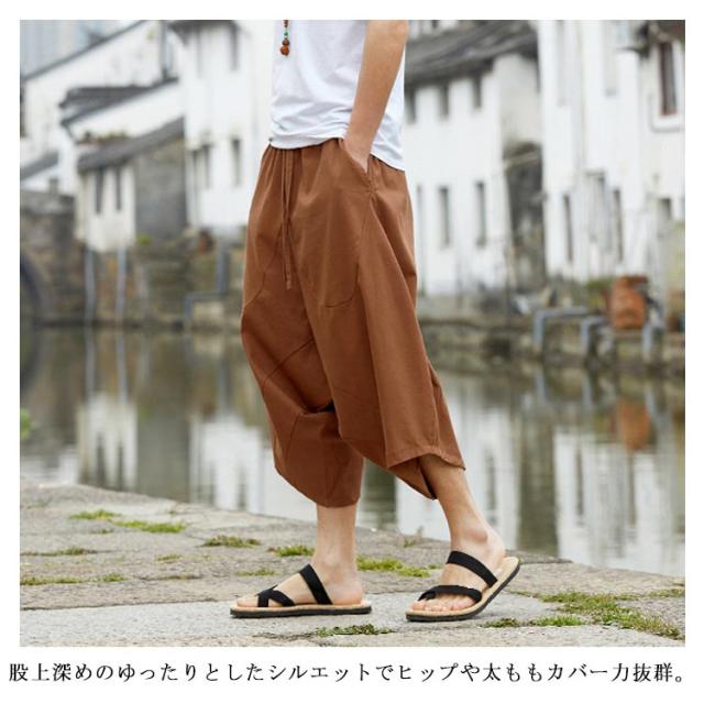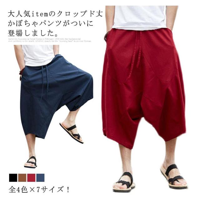 全4色×7サイズ!かぼちゃパンツ サルエルパンツ 7分丈 メンズ メンズパンツ さるえるシルエット ゆるパンツ 綿麻 イージーパンツ カジュアルパンツ アンクル クロップド 春夏 大きサイズ