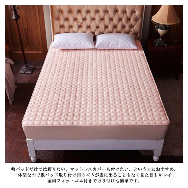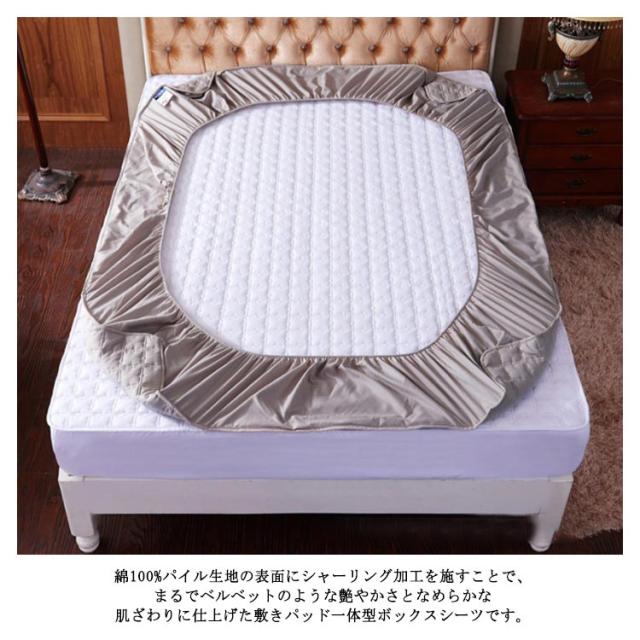 | 【ふわさらのやさしい肌ざわり】綿100%パイル生地の表面にシャーリング加工を施すことで、まるでベルベットのような艶やかさとなめらかな肌ざわりに仕上げた敷きパッド一体型ボックスシーツです。タオルのようなごわごわ感もなく、無意識にすりすりしてしまうほどの気持ちよさに癒されながら、眠るのが楽しみになるようなボックスシーツを目指しました。 【吸水性・吸湿性に優れたコットン100%素材でさらっと快適】敷きパッドの生地に使用した天然素材の綿は吸水性・吸湿性に優れ、汗をかいてもムレずに爽やか。朝までさらっと快適に過ごすことができます。タオル素材のよさと心地よさを最大限に引き出した敷パッドです。 【使い勝手もよく、オールシーズン活躍】汗ばむ季節はさらりと快適に、寒い季節はほんのりあったかな綿素材なので、1年を通して長い期間活躍してくれる敷きパッド一体型 ボックスシーツです。敷パッドだけでは頼りない、マットレスカバーも付けたい、という方におすすめ。一体型なので敷パッド取り付け用のゴムが表に出ることもなく見た目もキレイ!全周フィットゴム付きで取り付けも簡単です。 | |