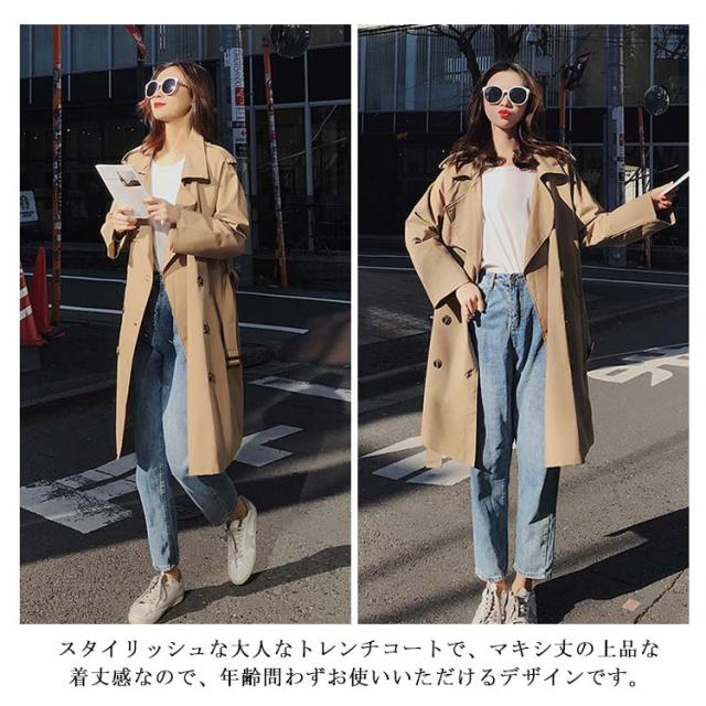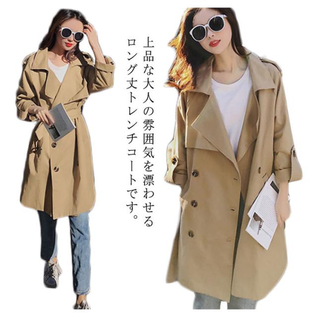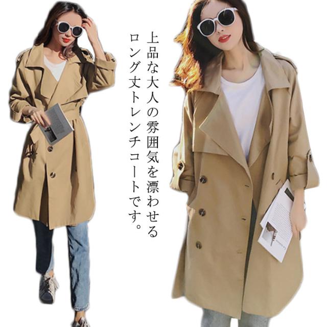 スプリングコート トレンチコート 長袖 ロング丈 レディース 無地 シンプル エレガント おしゃれ ファッション カジュアル 20代30代40代 新作