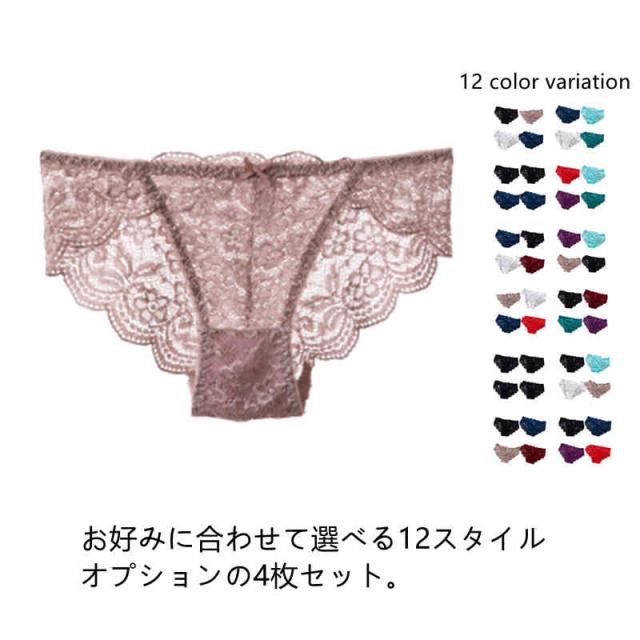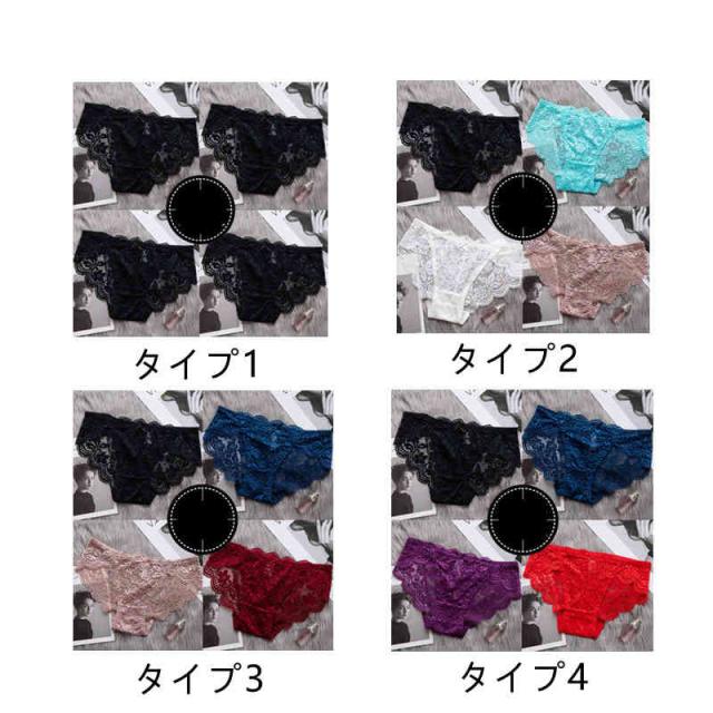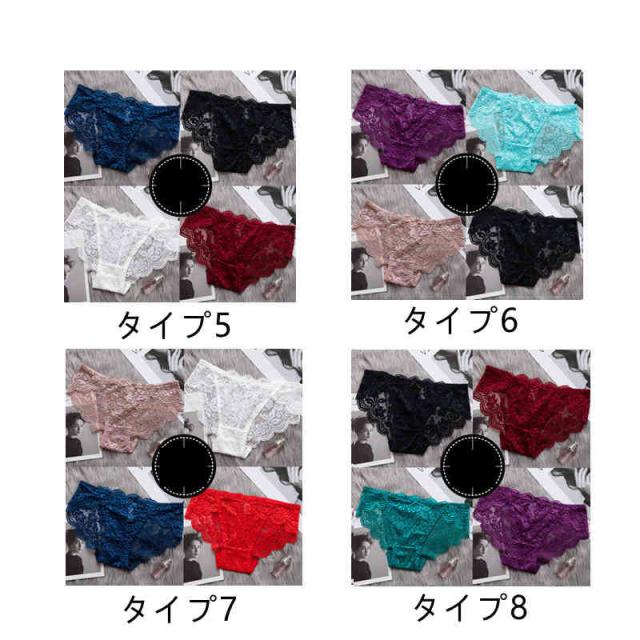 ショーツ レディース セクシー ショーツ 4枚セット 花柄 レースショーツ 透け感 セクシー レース 下着 パンティ パンツ 可愛いショーツ