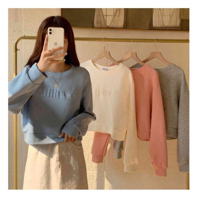 プルオーバー レディース ショート丈 長袖 トップ トレーナー ミニパーカー tシャツ トップ スウェットシャツ かわいい 春秋 冬服