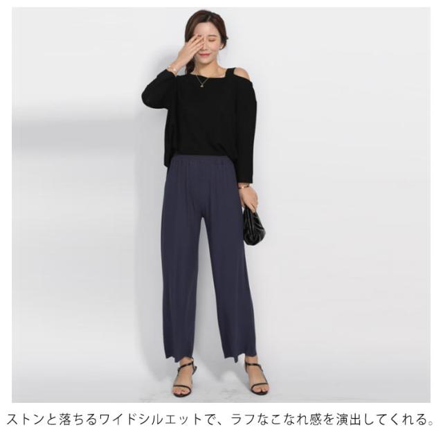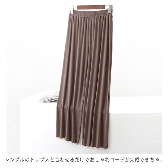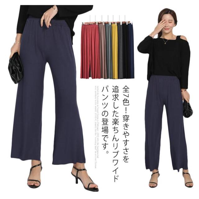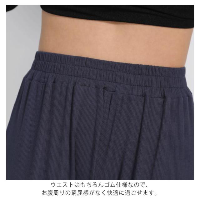 全8色!リブワイドパンツ レディース ワイドパンツ ガウチョパンツ リブ編み リラックスパンツ ヨガパンツ ウエストゴム ゆったり ルームウエア 部屋着 ボトムス シンプル リブ