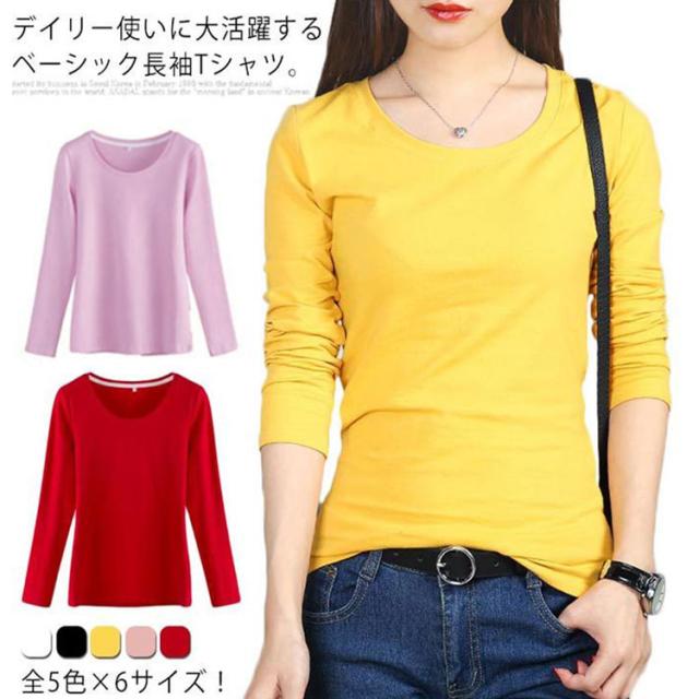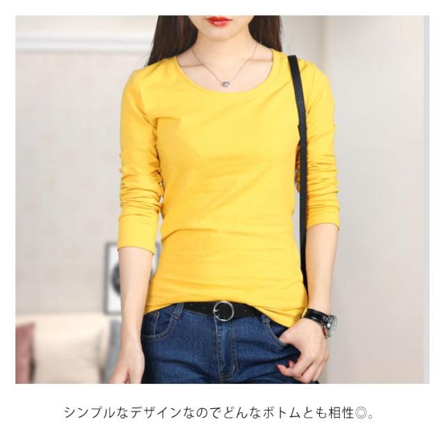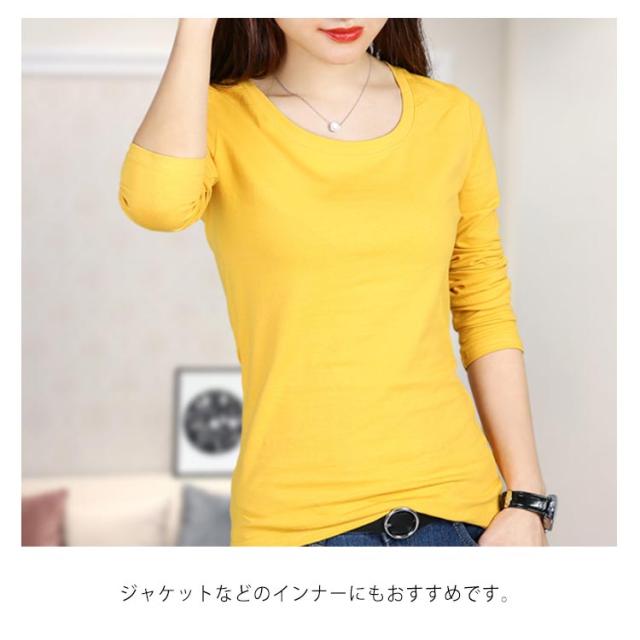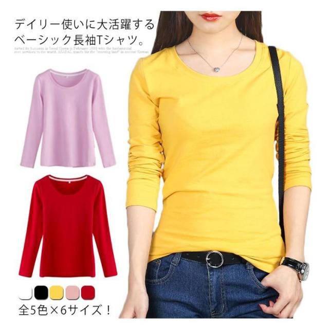 全5色×6サイズ!tシャツ Uネック 長袖tシャツ 無地tシャツ 長袖 tシャツ カットソー トップス シンプル 無地 綿 コットン 春 秋 シンプル 大きサイズ