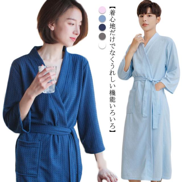 バスローブ レディース バスローブ メンズ ナイトガウン ワッフル パジャマ ルームウェア ロングガウン ホテル 秋 冬 夏 用 メンズ 薄手 速乾 タオル地 ガウン 夏用 軽量 吸水 お風呂上り