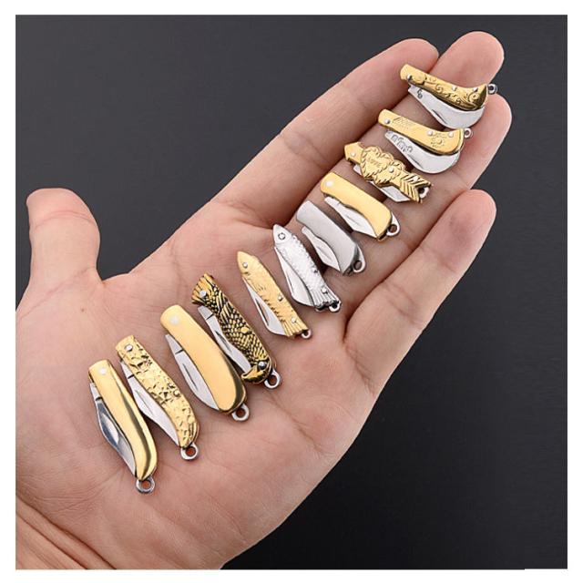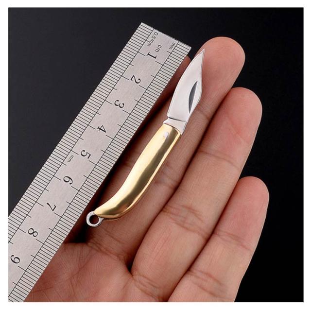 ミニナイフ 折り畳みナイフ キーホルダー カッターナイフ 折りたたみ 真鍮 ダンボールカッター ステンレスナイフ 段ボールカッター ミニカッター ストラップ穴 箱開封 雑貨 アウトドア 便利グッズ 送料無料