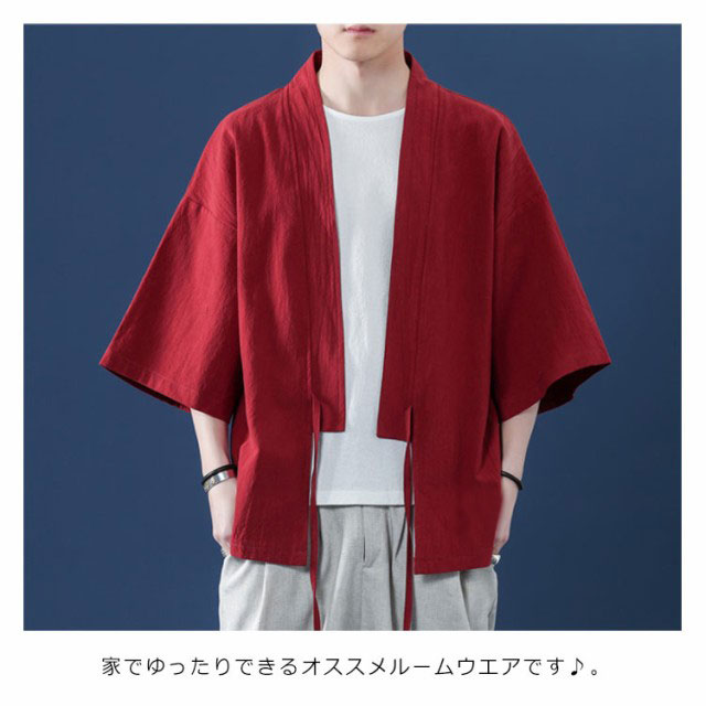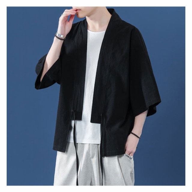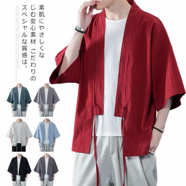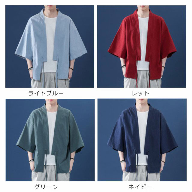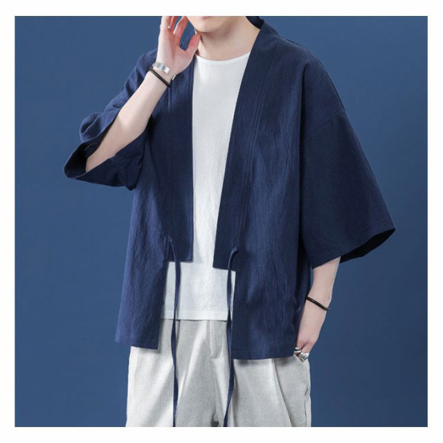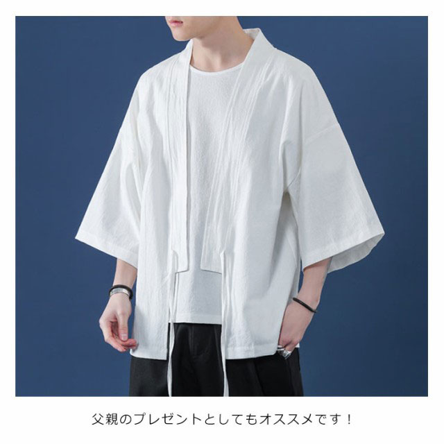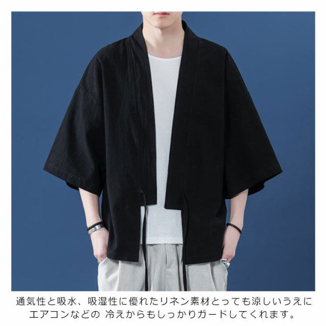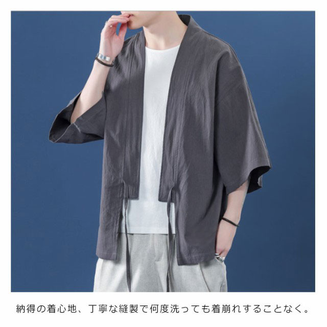 コート夏服 メンズ 甚平風カーディガン 着物 七分袖 無地 和風 羽織 パーカー 和式 カーディガン 紐付き シンプル トップス ゆったり 花火大会 お祭り おしゃれ 父の日