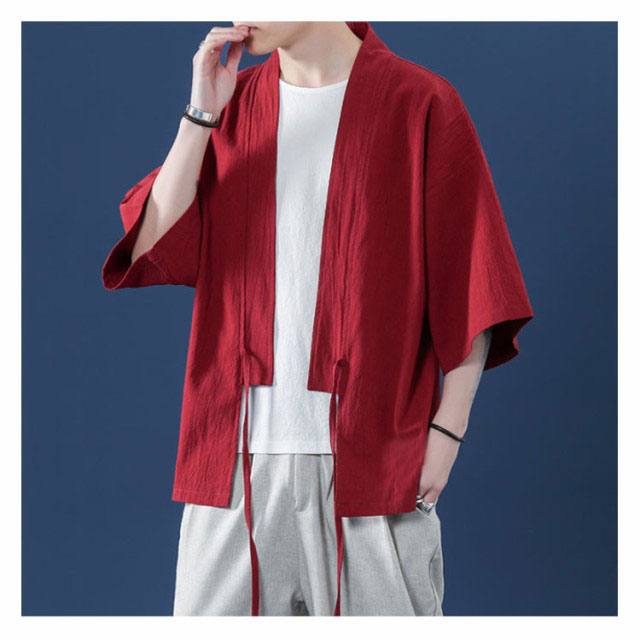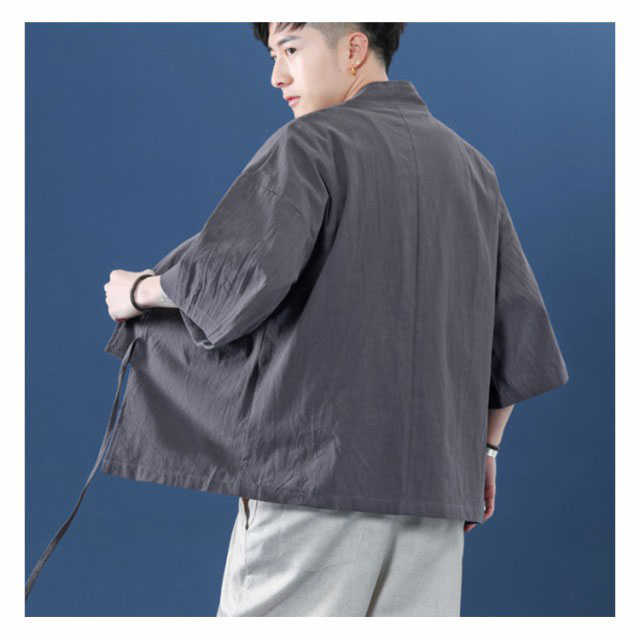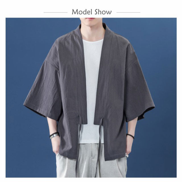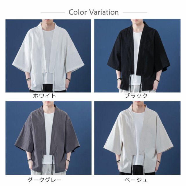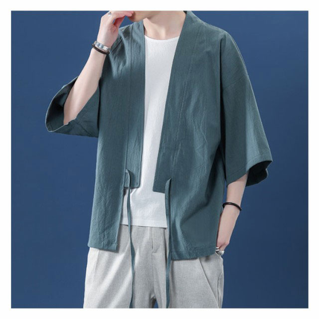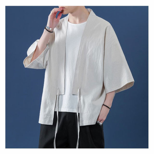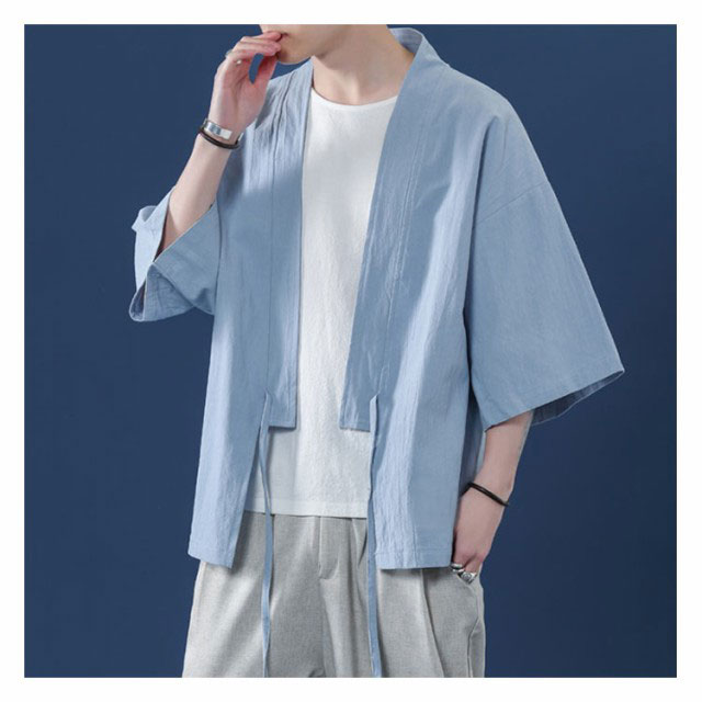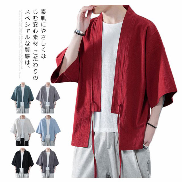 コート夏服 メンズ 甚平風カーディガン 着物 七分袖 無地 和風 羽織 パーカー 和式 カーディガン 紐付き シンプル トップス ゆったり 花火大会 お祭り おしゃれ 父の日