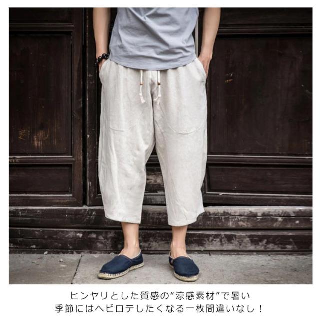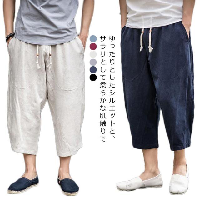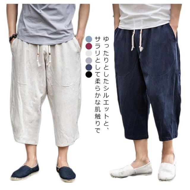 サルエルパンツ メンズ ワイドパンツ リネンパンツ イージーパンツ ハーレムパンツ ガウチョパンツ 薄手 カジュアル 大きいサイズ カジュアル ゆったり 無地