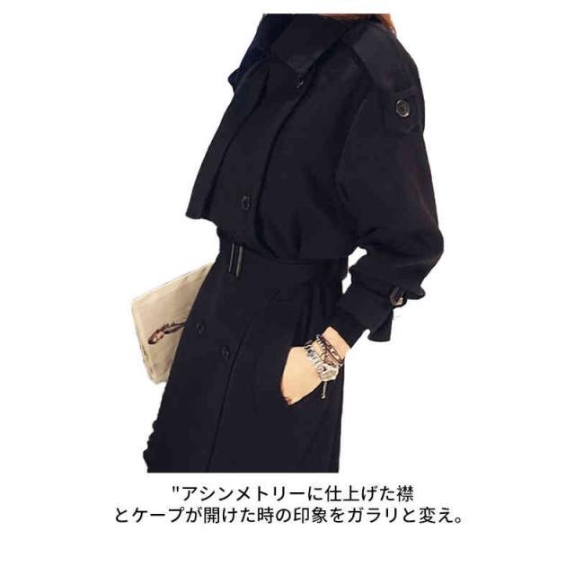 | アシンメトリーに仕上げた襟とケープが開けた時の印象をガラリと変え。 大人っぽくも可愛くも着こなせ、プラスモードなトレンドを取り入れた欲張りコートです タブを閉じればステンカラーにな2重襟が可愛いポイントに♪ 気分や天候によって着分けられる便利なディティールデザインです | |