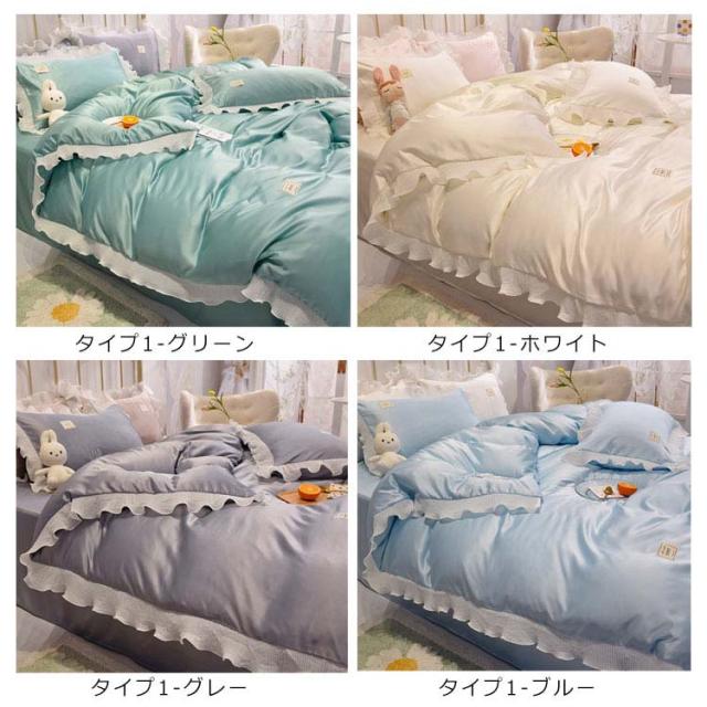 布団カバー ダブル セット ベッドカバー シーツカバー 4点セット 夏 接触冷感 フリル付き 掛け布団カバー 枕カバー フリル付き 丸洗いOK