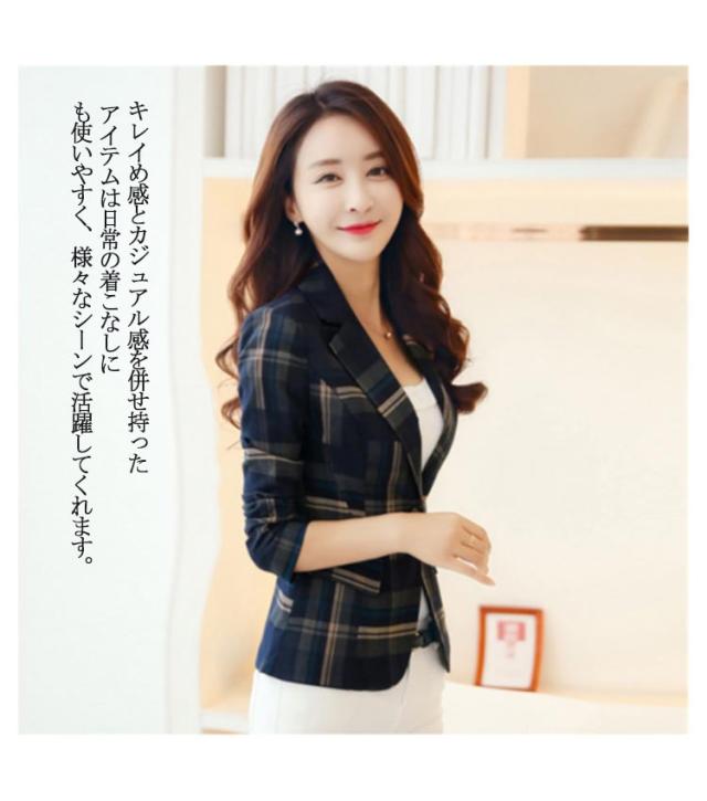テーラードジャケット レディース ショート丈ジャケット テーラード アウター ジャケット チェック柄 春ジャケット ショート丈 長袖 通勤 オフィス 春 秋 送料無料