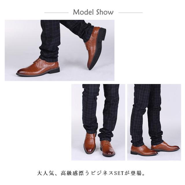 | 大人気、高級感漂うビジネスSETが登場。 限りなく本革に近づけた自然な風合い。 アンティーク感とシャドー加工で立体感と深みのある大人の艶靴に。 もちろん機能性にも拘っており、ビジネスマンには嬉しい防滑ソールを採用。カジュアルシーンまで活躍できる。 ブラック イエロー ブルー ブラウンの4カラーから選べる! メッシュカップインソールで通気性も良くいつでも快適。 | |