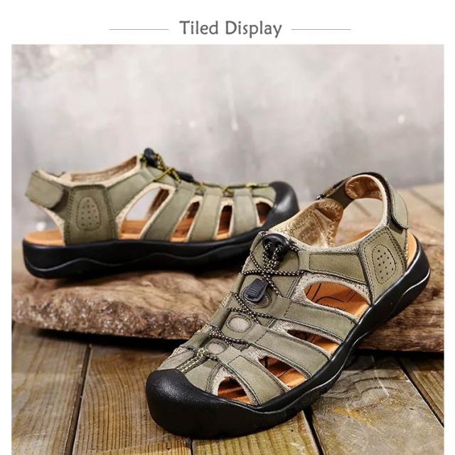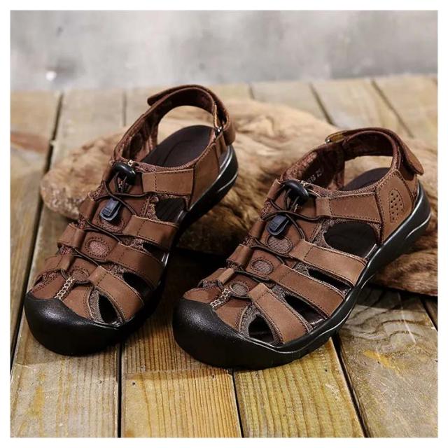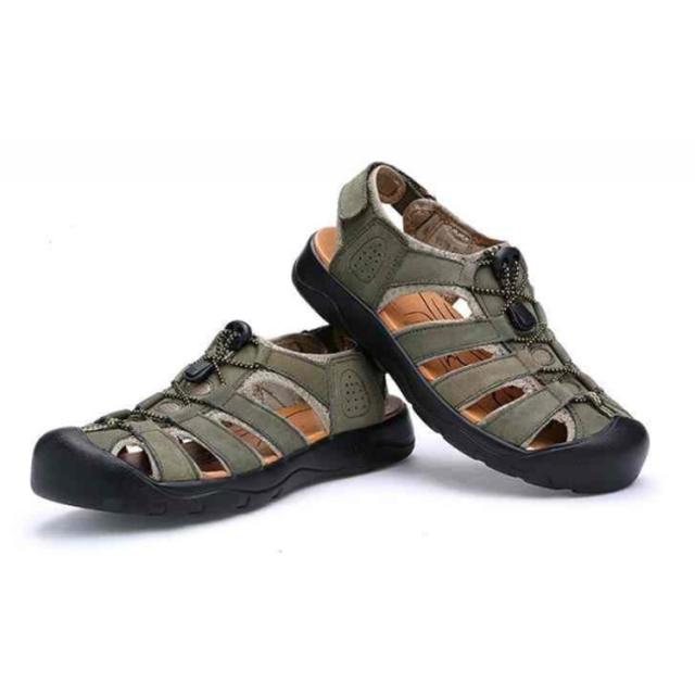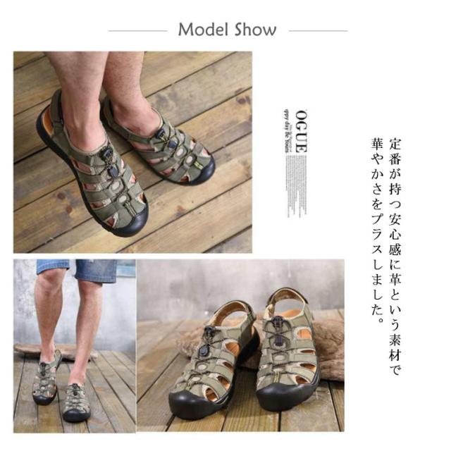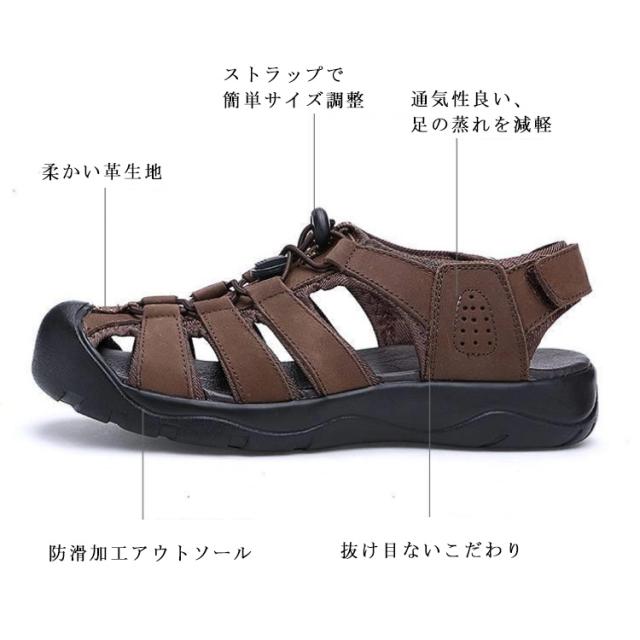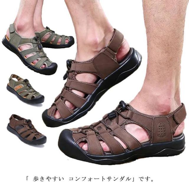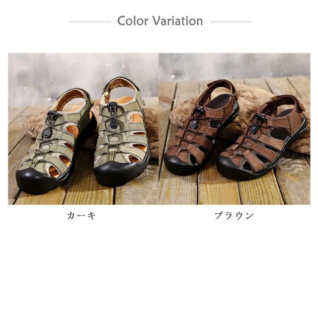 カメサンダル スポーツサンダル メンズ アウトドア マリンスポーツ シューズ 夏サンダル 革 レザー カバー付き 耐衝撃 衝撃吸収 通気 カジュアル 父の日