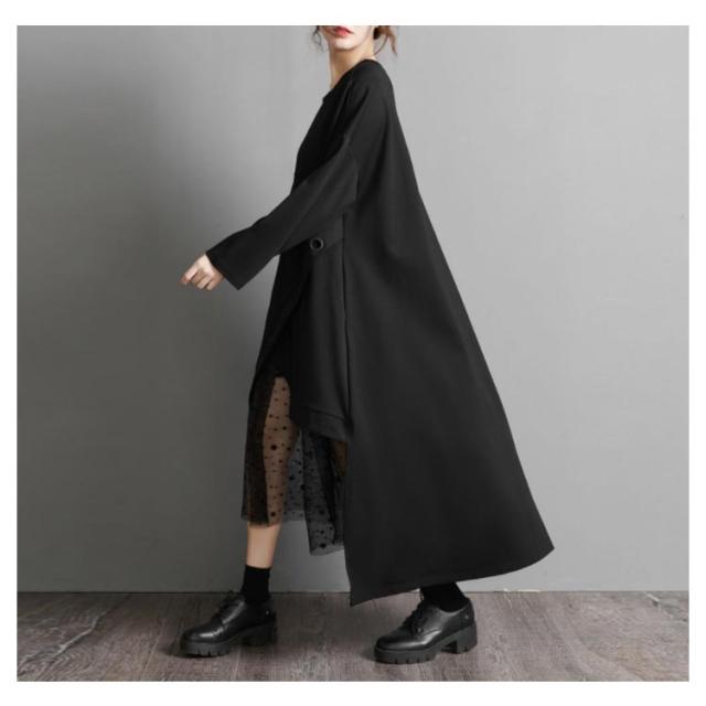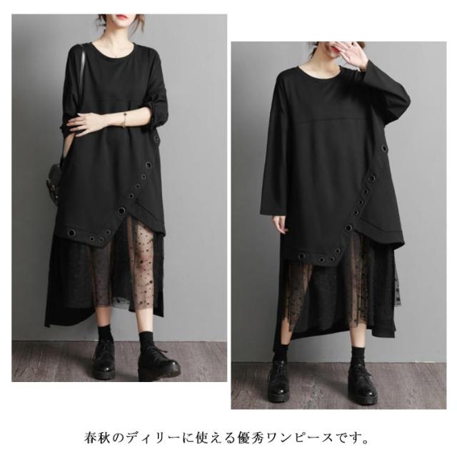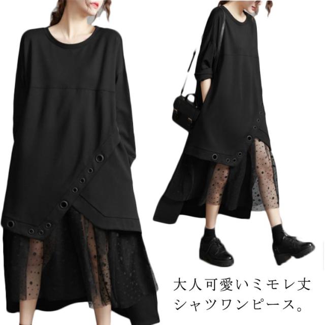 シャツワンピース ロングワンピース 無地 レースワンピース 長袖ワンピース プリーツワンピース 大きサイズ カジュアルワンピース ミモレ丈 膝下丈 ゆったり 体型カバー 春 秋 送料無料