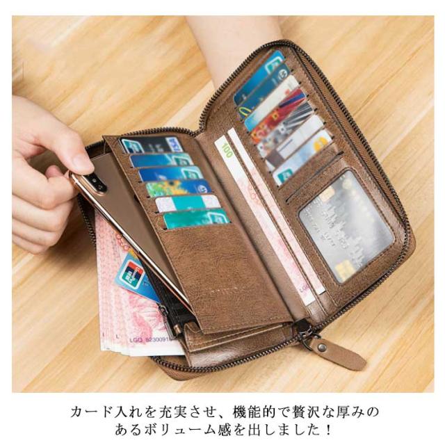 ロングウォレット 革財布 長財布 ラウンドファスナー l字ファスナー 革 軽量 財布 大容量 小銭入れ カード収納 見やすい 長財布 メンズ 男子 父の日 プレゼント
