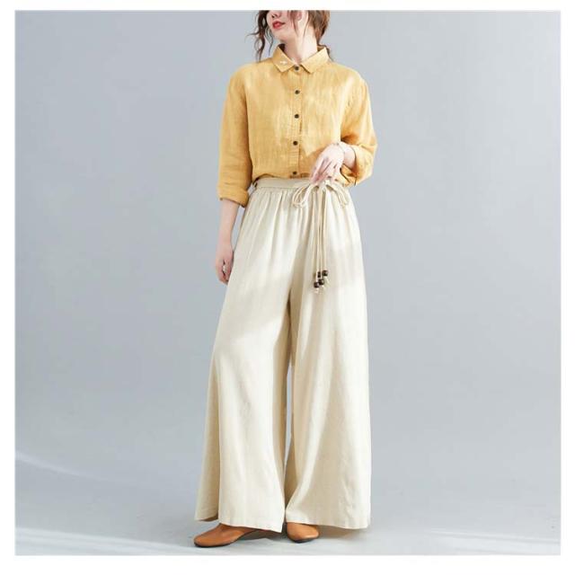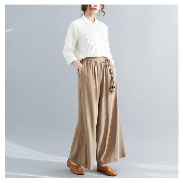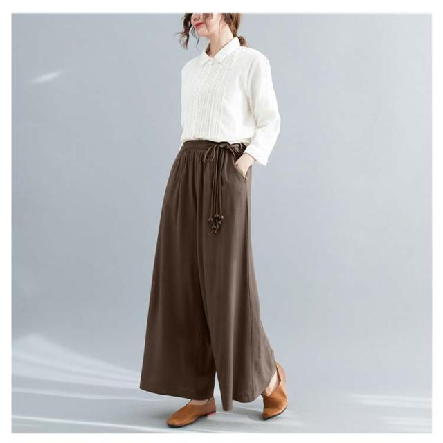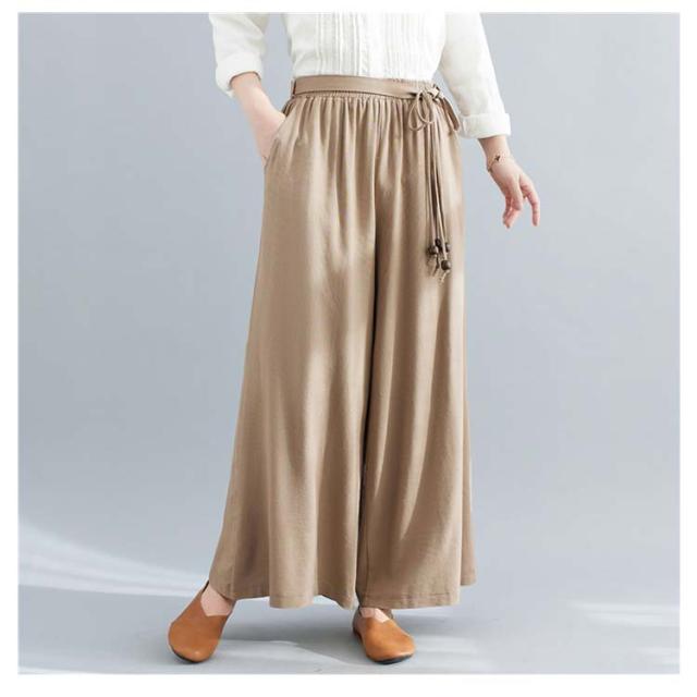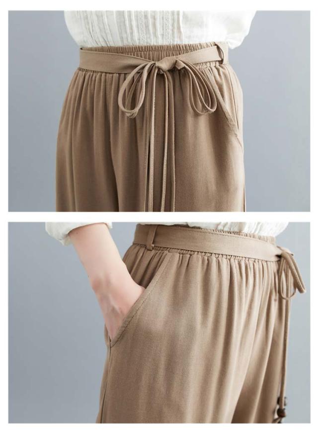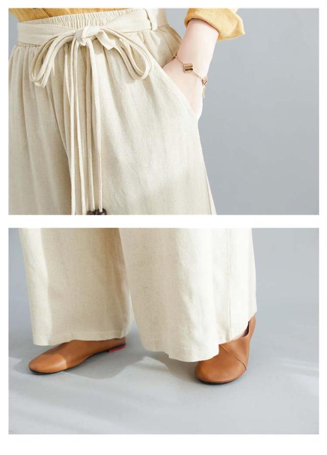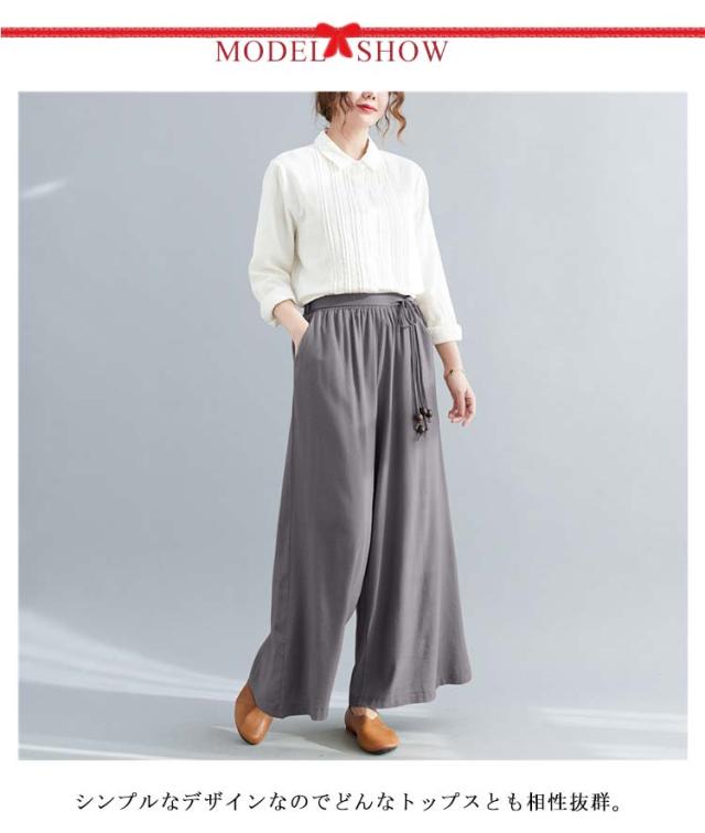 ワイドパンツ リネン レディース リネン混ワイドパンツ ロング パンツ レディース 麻 リネン ボトムス 麻混 無地 紐ベルト セットアップ ウエストゴム きれいめ 夏 涼しい ゆったり 綿麻 体型カバー 送料無料