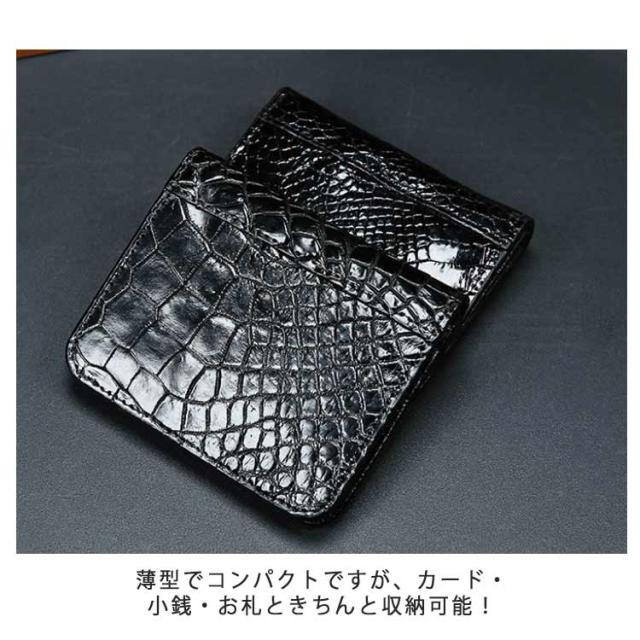 送料無料 財布 ミニ財布 二つ折り メンズ ショートウォレット 薄い 革 財布 コインケース クロコ型押し クロコダイル 型押しレザー さいふ コンパクト 小さい お財布 カードケース