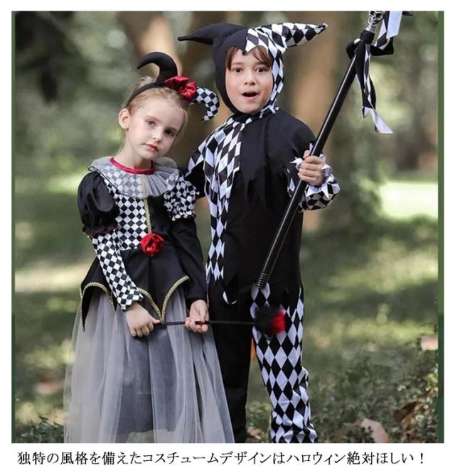 子供ハロウィン衣装 仮装 コスプレ ピエロ ジョーカー Joker サーカス 男の子 女の子 キッズ お揃い コスプレ ワンピース イベント コスチューム 変装 イベント 演出服 文化祭 コスチューム 100 110 120 130 140 150 160