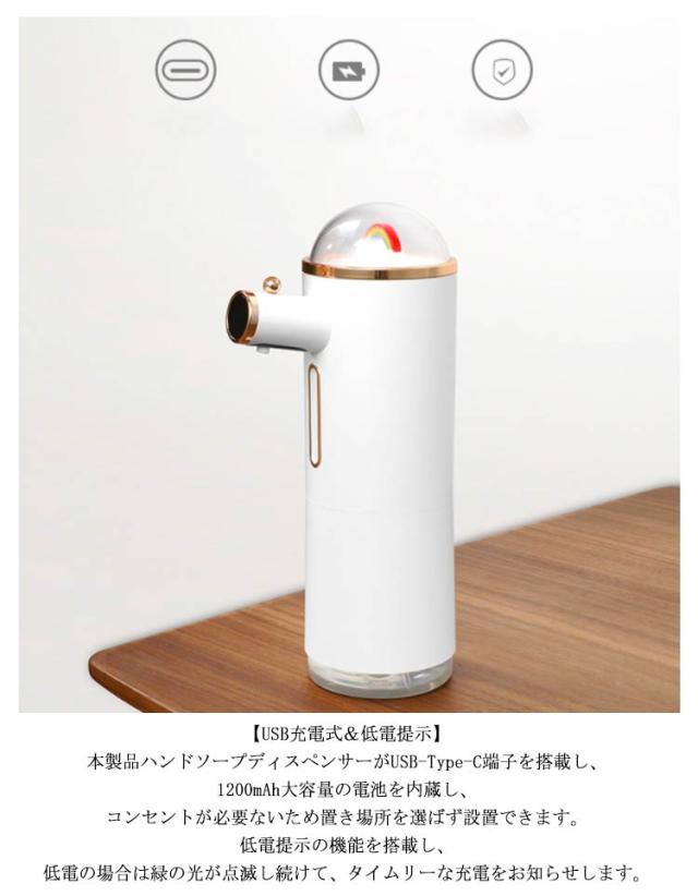 ソープディスペンサー 自動 泡 おしゃれ オートソープディスペンサー 充電式 ディスペンサー USB 300-500ml オートディスペンサー 手指消毒機 ノータッチ 詰め替え 防水 高感度センサー搭載キッチン ハンドソープディスペンサー