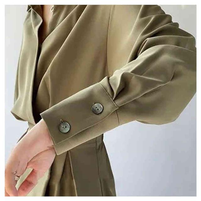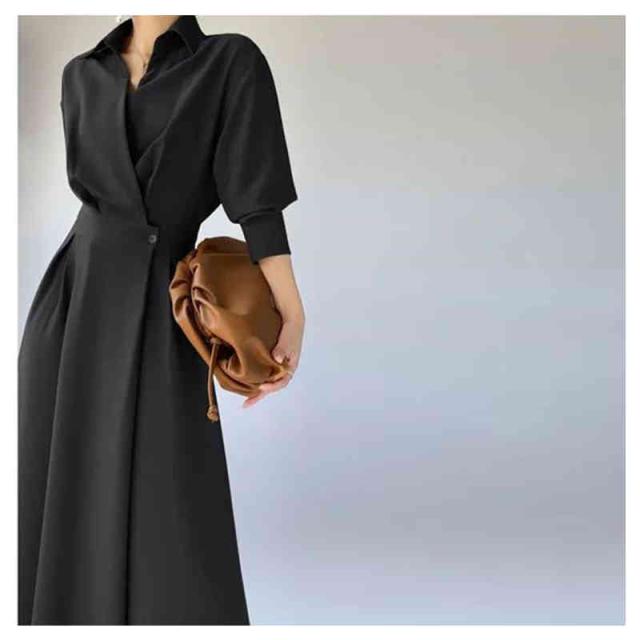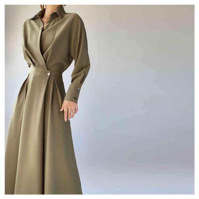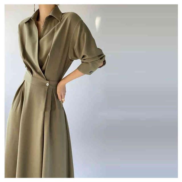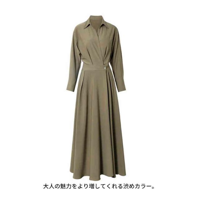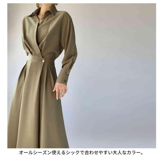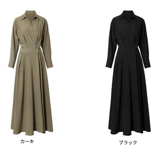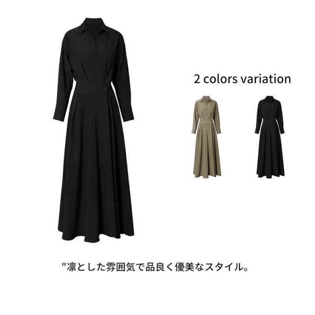 ワンピース ロングワンピース シャツ風 シャツワンピース シャツ ブラウス ワンピ シャツワンピ ロング マキシ オフィスカジュアル 通勤 マキシワンピース レディース 長袖 大きいサイズ 腰収縮